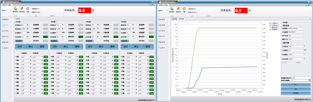 8、硬件模块化设计,柔性输出,采用多组独立电源并配备高精度智能高温烘箱,满足多种不同规格电容产品同时测试,每组被测电容产品电流一致,并可监测和记录每一组电容实时状态,自动剔除不良品且不干扰其他路电容试验。