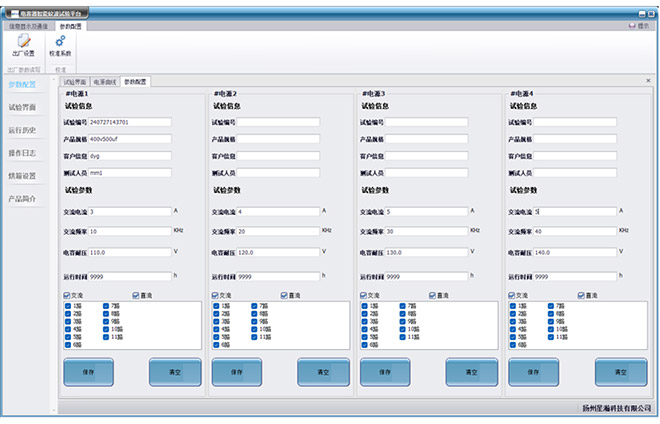 8、硬件模块化设计,柔性输出,采用多组独立电源并配备高精度智能高温烘箱,满足多种不同规格电容产品同时测试,每组被测电容产品电流一致,并可监测和记录每一组电容实时状态,自动剔除不良品且不干扰其他路电容试验。